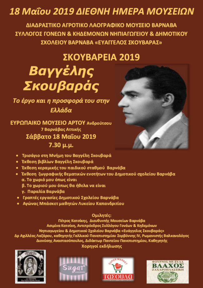Αφιέρωμα μνήμης στον καθηγητή Βαγγέλη Σκουβαρά θα πραγματοποιήσουν το Διαδραστικό Αγροτικό Λαογραφικό Μουσείο Βαρνάβα και ο Σύλλογος Γονέων και Κηδεμόνων Νηπιαγωγείου και Δημοτικού Σχολείου Βαρνάβα «Ευάγγελος Σκουβαράς» το Σάββατο 18 Μαΐου 2019, Διεθνή Ημέρα Μουσείων και με τίτλο «ΣΚΟΥΒΑΡΕΙΑ 2019».